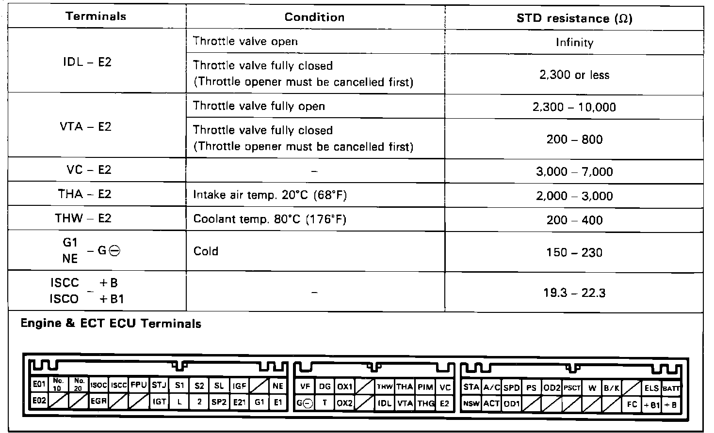 ECU Resistance Chart: