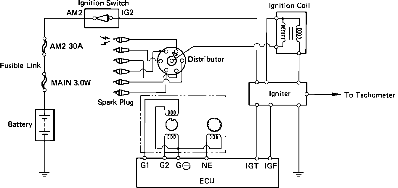 The igniter is essentially an electronic relay. It receives a "trigger" from the ECM and responds by turning a higher amperage current to the ignition coil on and off. Each time a spark is produced an ignition confirmation (IGF) signal is sent to the ECM.