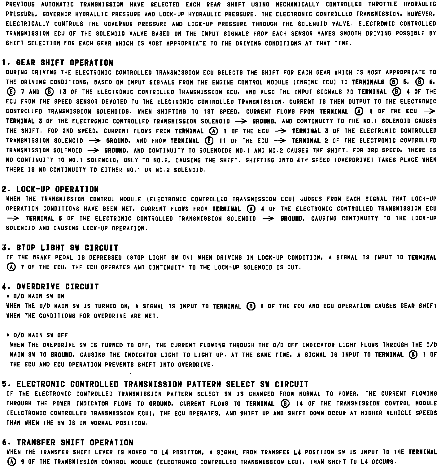 Transmission Control Systems: Description and Operation