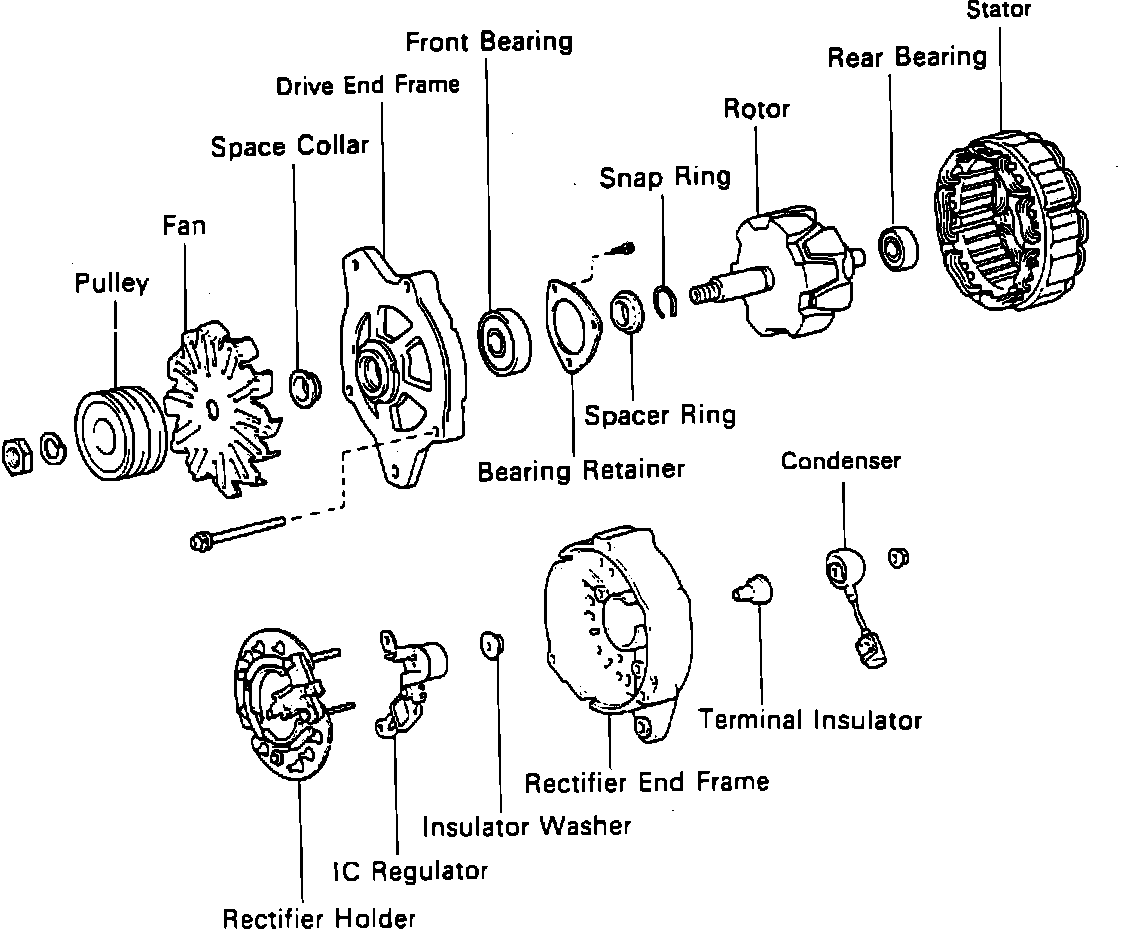 Fig. 1 Exploded View Of Alternator. Less IC Regulator: