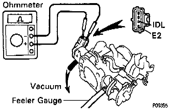 4. Connect the test probe of an ohmmeter to the terminals IDL and E2 of the throttle position sensor.