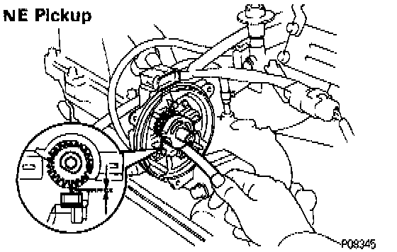 - Using a thickness gauge, measure the gap between the signal rotor and the pickup coil projection.