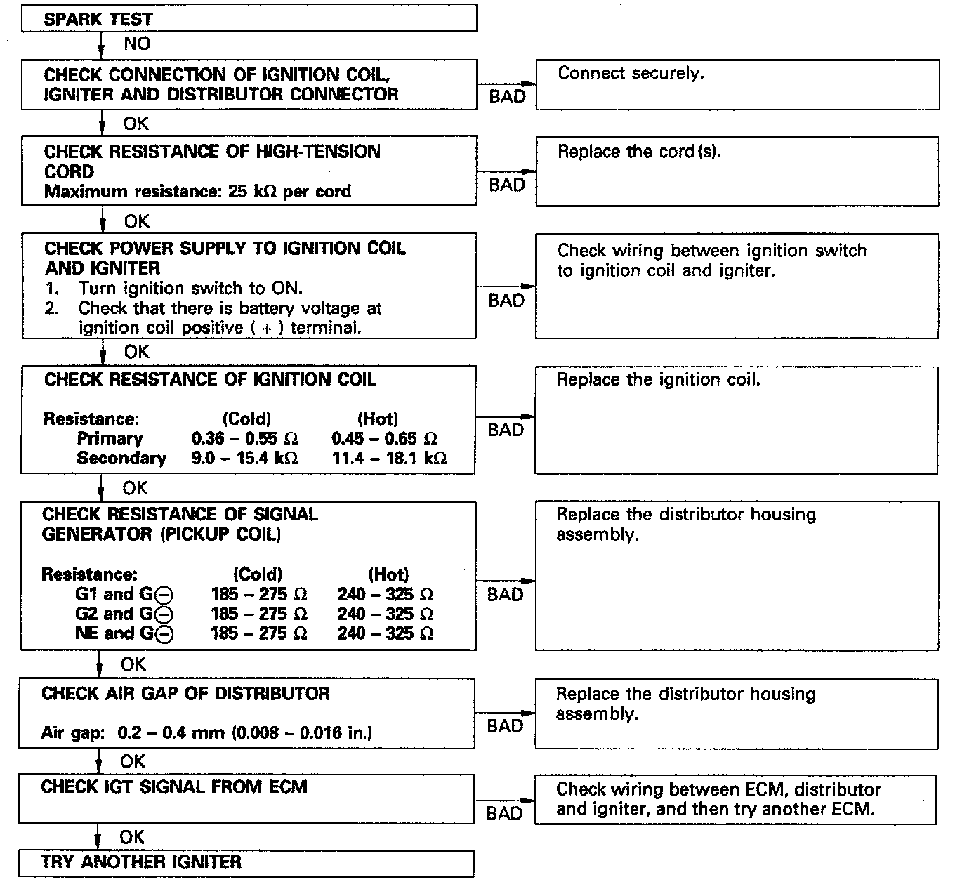 NOTE: This is a test of the Ignition circuit. As there is no component test of the Igniter itself, a process of elimination is used to find if the Igniter is at fault.
