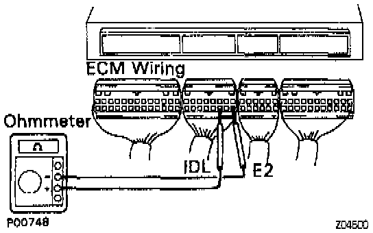 NOTE: Do not touch the engine control module terminals. The tester probe should be inserted in the wiring connector from the wiring side.