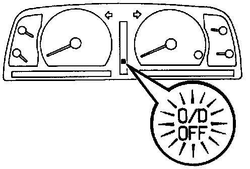- If a malfunction occurs within the vehicle speed sensors (No. 1 or 2), solenoids (No. 1 or 2), throttle sensor or engine speed signal, the overdrive OFF indicator light will blink to warn the driver.