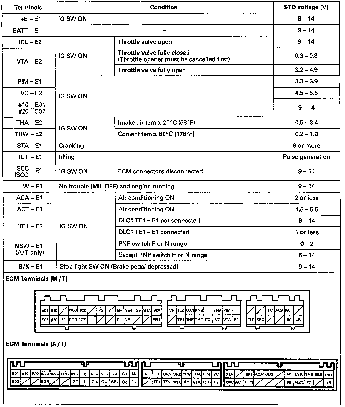 HINT: The MFI circuits can be checked by measuring the resistance and voltage at the wiring connectors of the ECM.