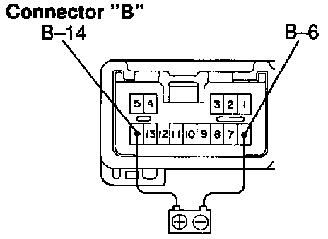 a. Connect positive (+) lead from the battery to terminal B-14 and negative (-) lead from the battery to terminal B-6.