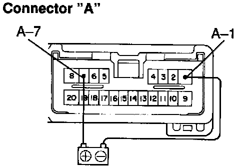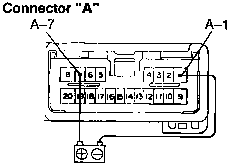 a. Connect the positive (+) lead from the battery to terminal A-7 and the negative (-) lead to terminal A-1.