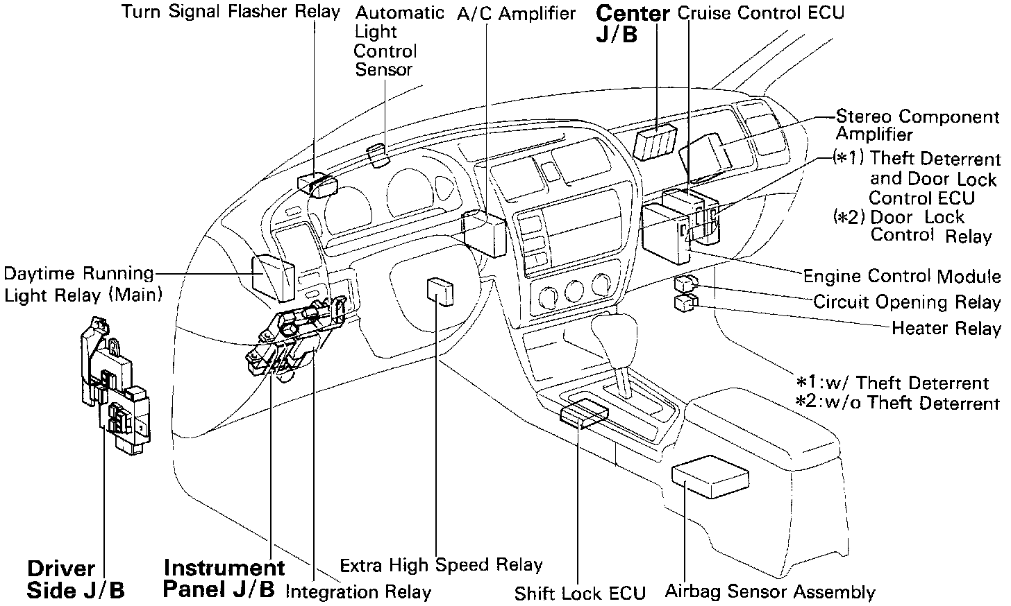 Locations-Instrument Panel (Column Shift) (Fig 19):