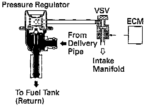 The ECM turns on a VSV (Vacuum Switching Valve) to draw the air into the diaphragm chamber of the pressure regulator if it detects that the temperature of the engine coolant is too high during engine starting.