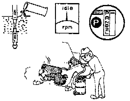 (e) With the engine idling, check the fluid level.