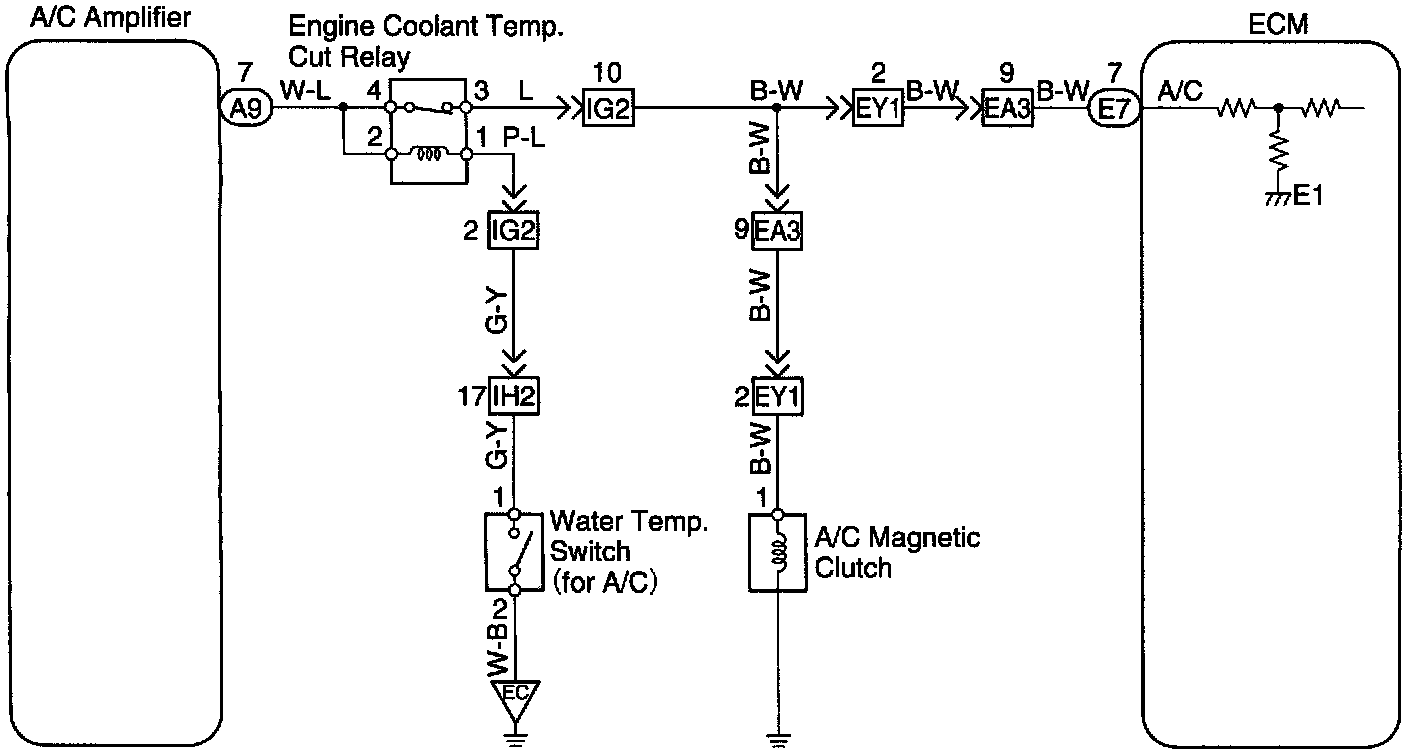 CIRCUIT DESCRIPTION When the air conditioning operates (increased engine load), battery positive voltage is applied to terminal A/C of the ECM (