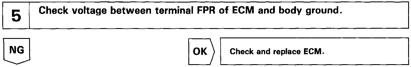 The fuel pump speed is controlled at two levels (high speed or low speed) by the condition of the engine (starting, light load, heavy load). When the engine starts (STA ON), Tr2 in the ECM is OFF, so battery voltage is applied directly to the fuel pump. Fuel pump operates at high speed.