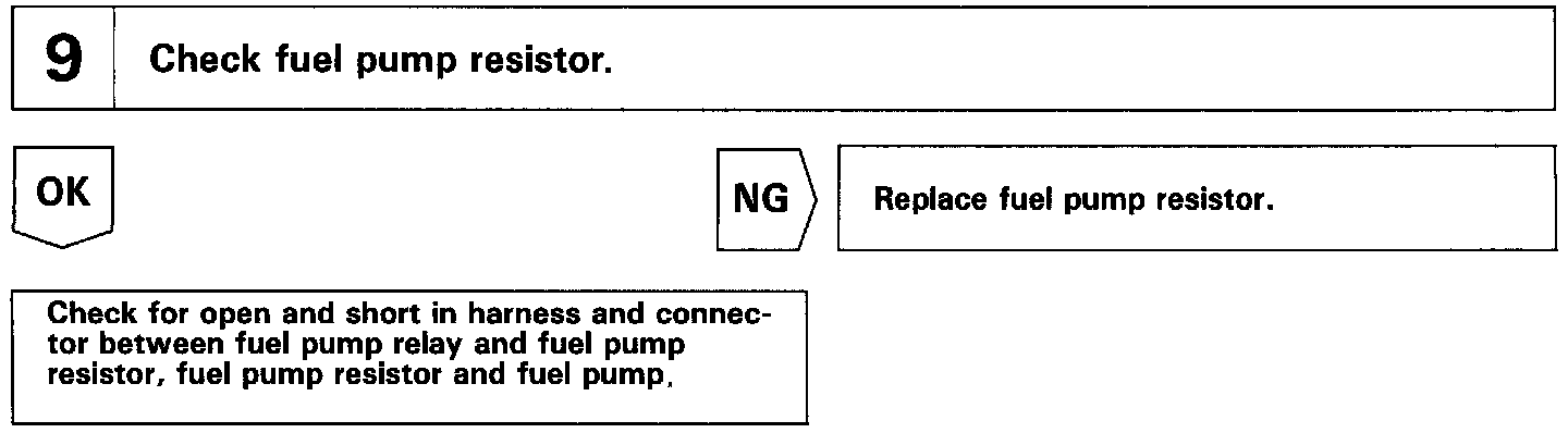 After the engine starts, during idling or light loads, since Tr2 goes ON, power is supplied to the fuel pump via the fuel pump resistor.