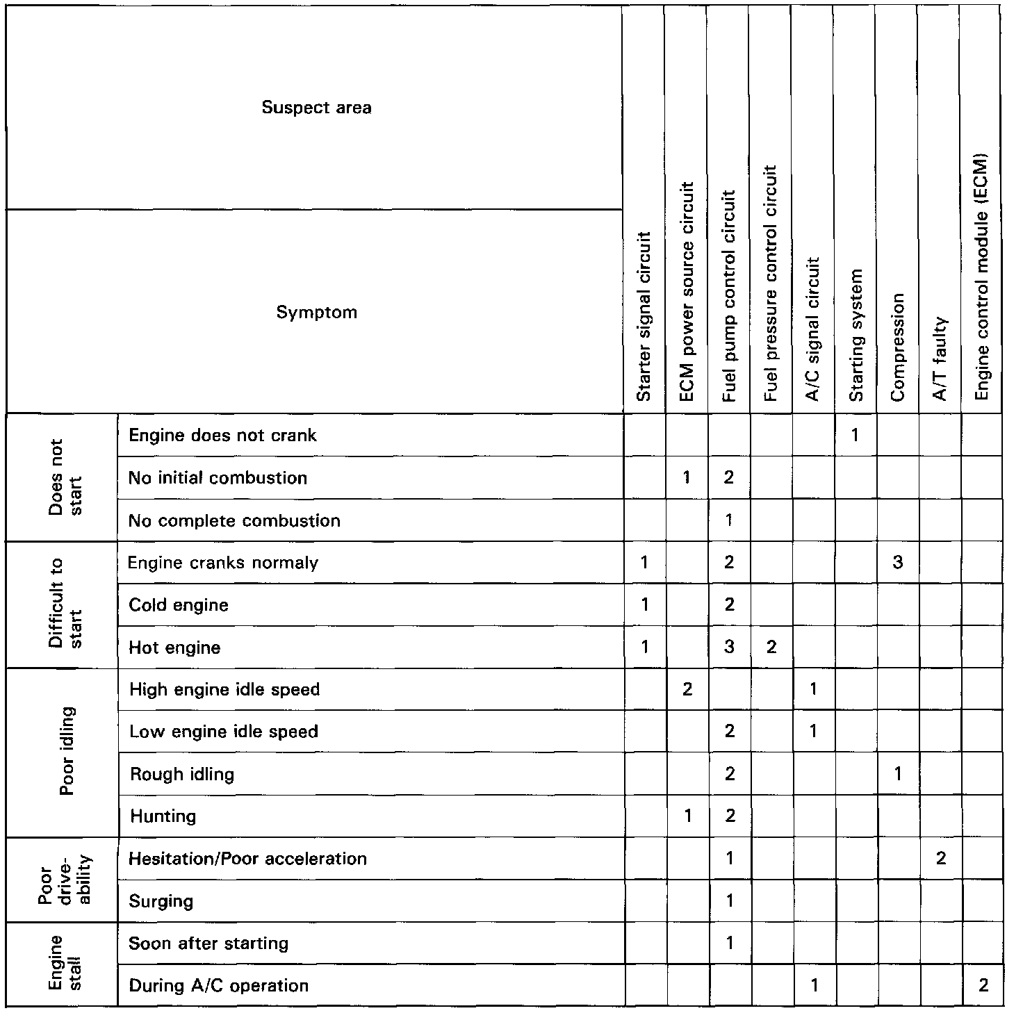 When the malfunction code is not confirmed in the diagnostic trouble code check and the problem still can not be confirmed in the basic inspection, then proceed to this step and perform troubleshooting according to the numbered order given in the image above.