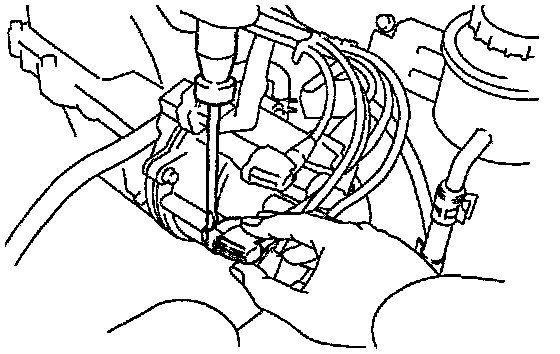 - Using a screwdriver, lift up the lock claw and disconnect the holder from the distributor cap (ignition coil).