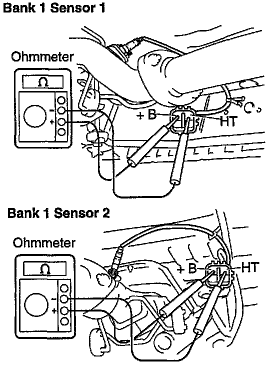 INSPECT HEATER RESISTANCE OF HEATED OXYGEN SENSORS.(Bank 1, Sensor 1, Bank 1 Sensor 2)