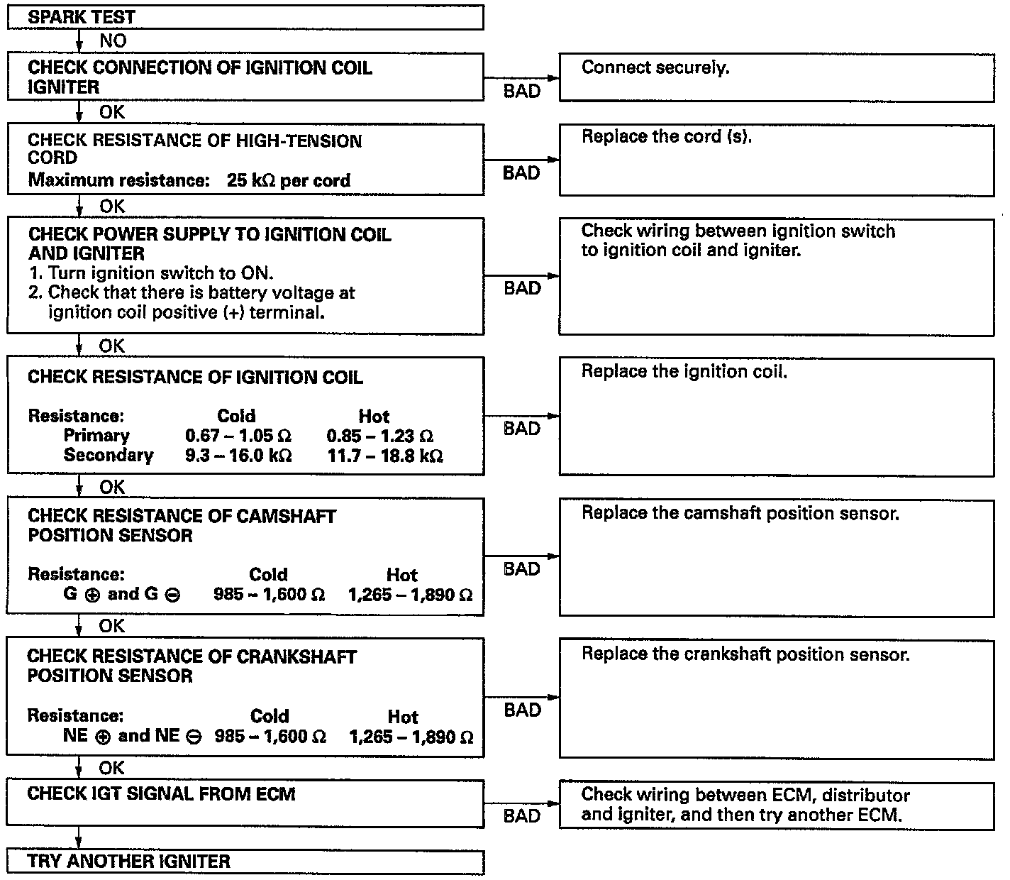 If the spark does not occur, perform the test as follows: