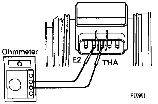 1. INSPECT MASS AIR FLOW METER (MAF) METER RESISTANCE- Using an ohmmeter, measure the resistance between terminals THA and E2.