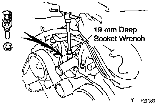 - Using a 19 mm deep socket wrench, remove the ECT sensor and gasket.