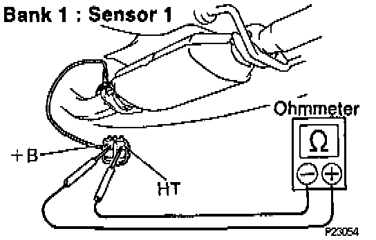 INSPECT HEATER RESISTANCE OF HEATED OXYGEN SENSORS.(Bank 1, Sensor 1, Bank 1 Sensor 2)