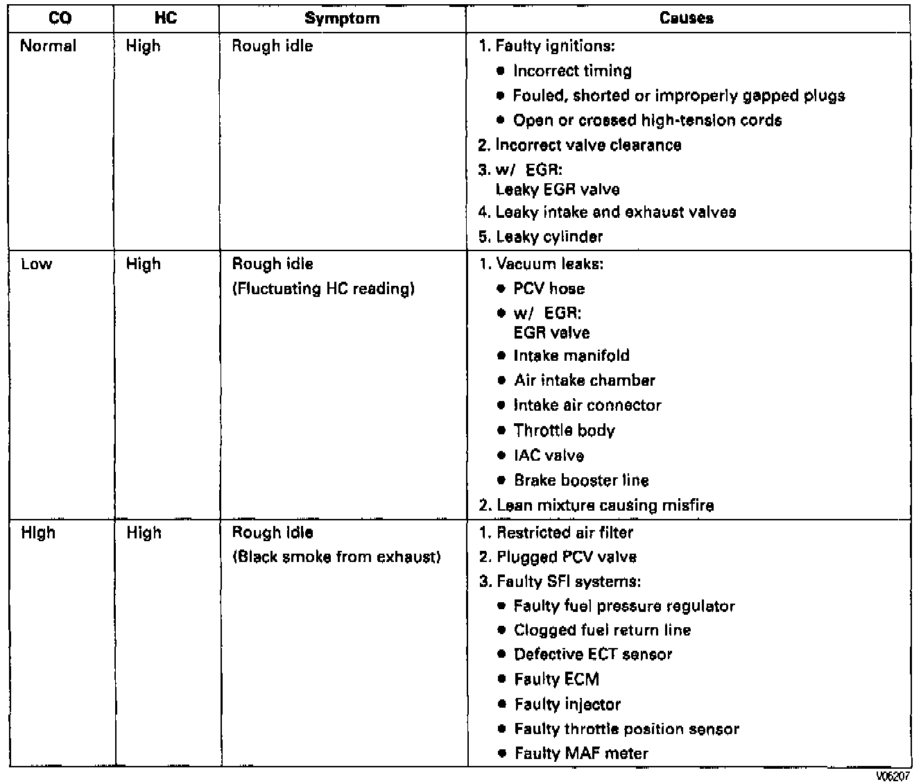 If the CO/HC concentration does not comply with regulations, troubleshoot according to the table above.