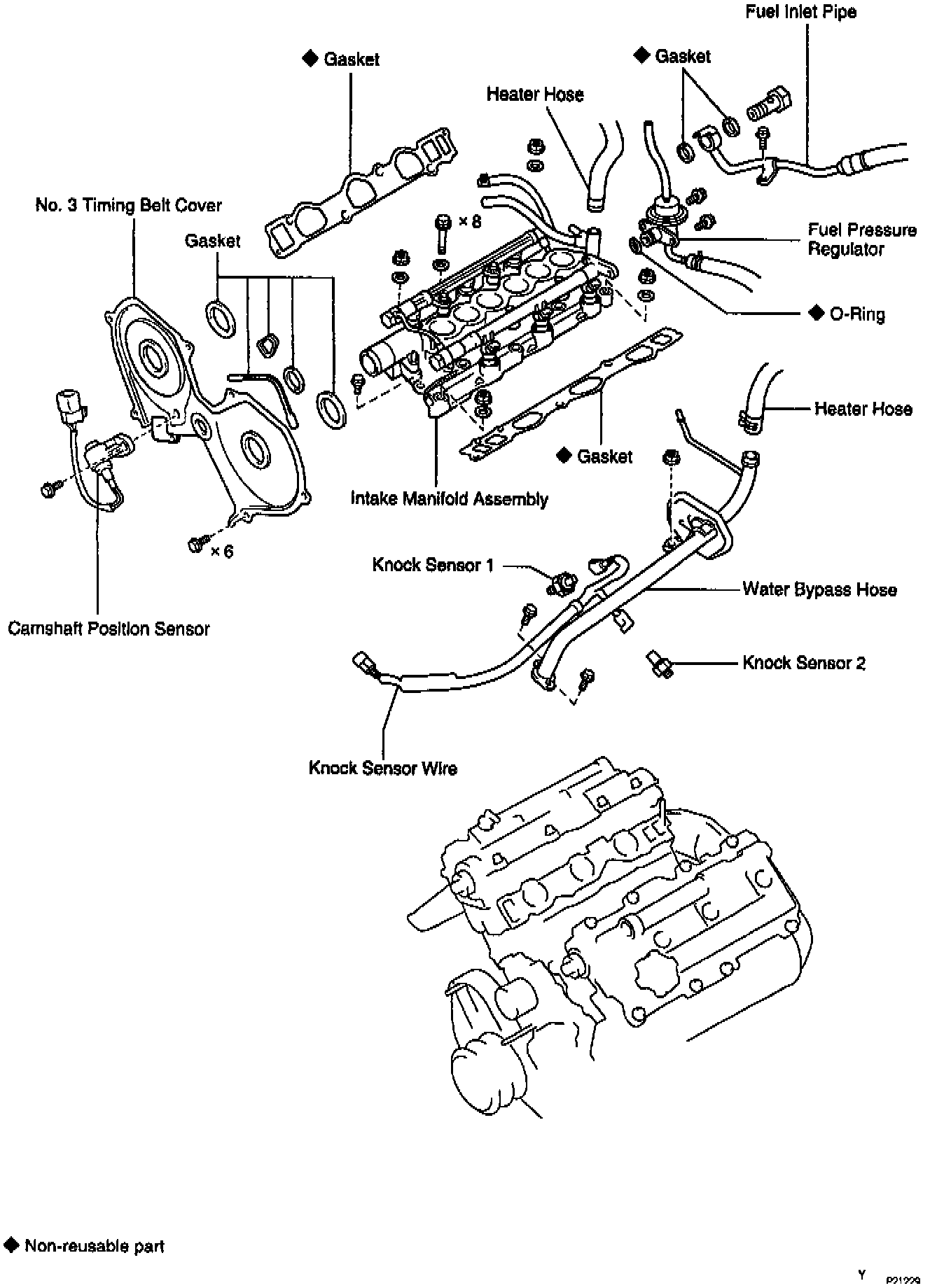 2. REINSTALL WATER BYPASS PIPE AND KNOCK SENSOR WIRE.