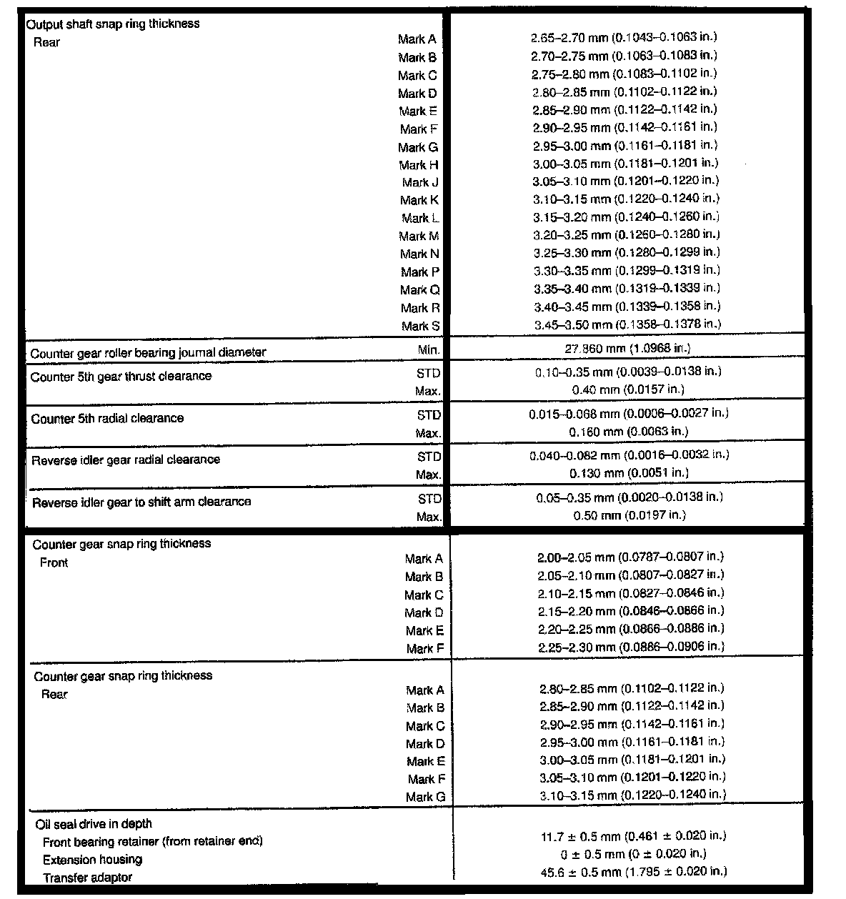 R150/R150F 5-spd M/T, Output Shaft/Gear Clearance: