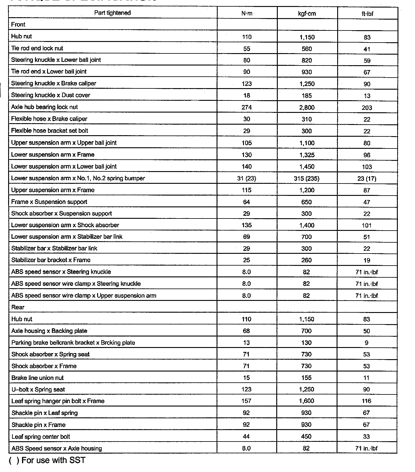 M/T Torque Data