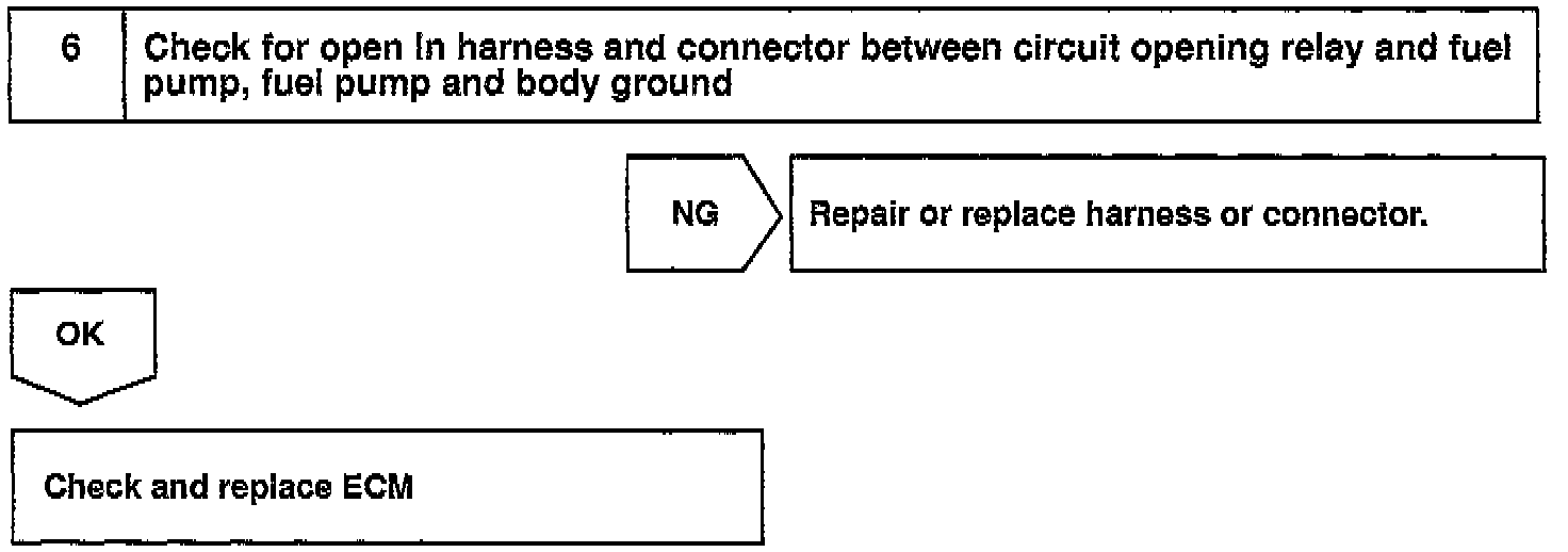 While the NE signal is generated (engine running), the ECM keeps Tr ON (circuit opening relay ON) and the fuel pump also keeps operating.