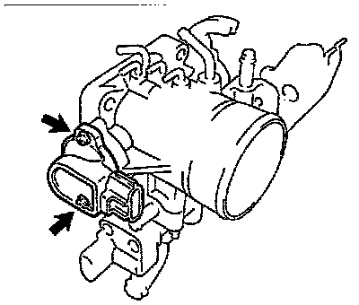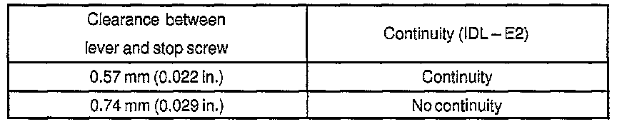 - Insert a 0.65 mm (0.026 in.) thickness gauge between the throttle stop screw and stop lever.