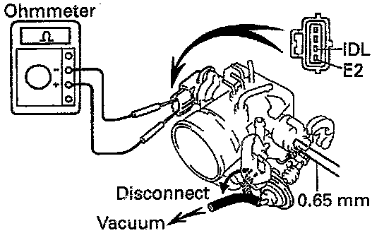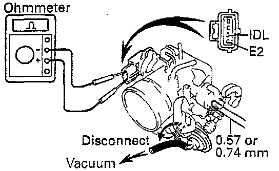 - Connect the test probe of an ohmmeter to the terminals IDL and E2 of the sensor.