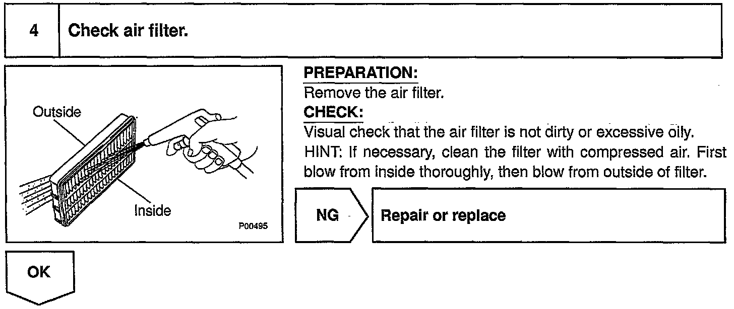 When the malfunction code is not confirmed in the DTC check, troubleshooting should be performed in the order for all possible circuits to be considered as the causes of the problems. In many cases, by carrying out the basic engine check shown in the above flow chart, the location causing the problem can be found quickly and efficiently. Therefore, use of this check is essential in engine troubleshooting.