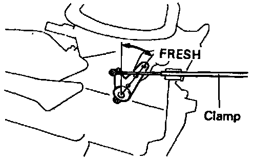 Set the air inlet damper on "FRESH" position and install the control cable and lock the clamp.