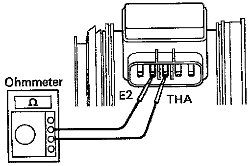 1. INSPECT MAF METER RESISTANCE- Using an ohmmeter, measure the resistance between terminals THA and E2.