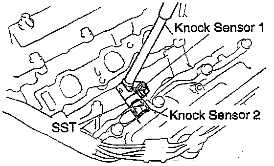 - Using SST, remove the knock sensor. SST 09817-16011