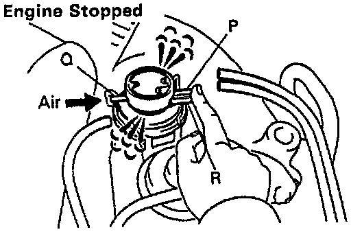 - Block ports P and R with your finger.