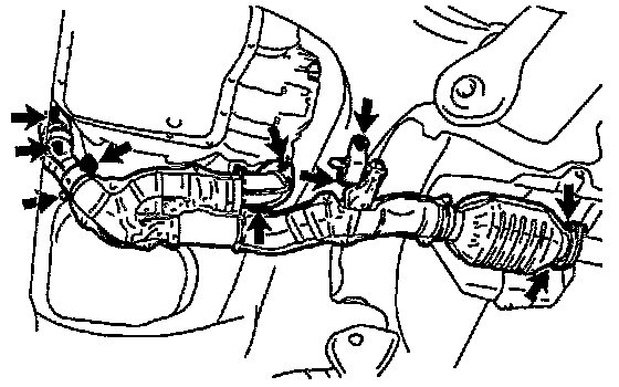 - Remove the 2 bolts and 2 nuts holding the front exhaust pipe to the center exhaust pipe.