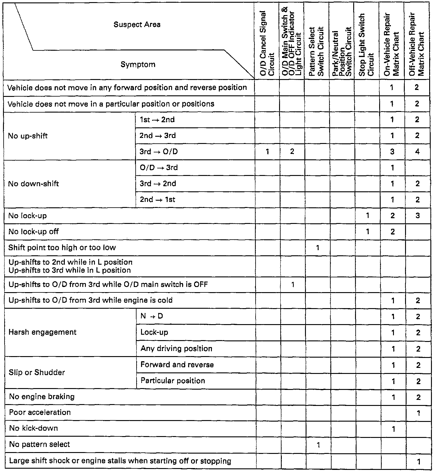 ON-VEHICLE REPAIR MATRIX - Part 1: