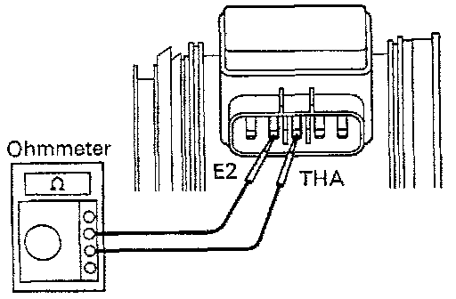 - Using an ohmmeter, measure the resistance between terminals THA and E2.