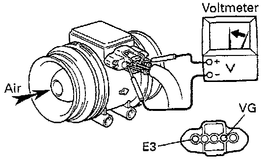 - Blow air into the MAF meter, and check that the voltage fluctuates.