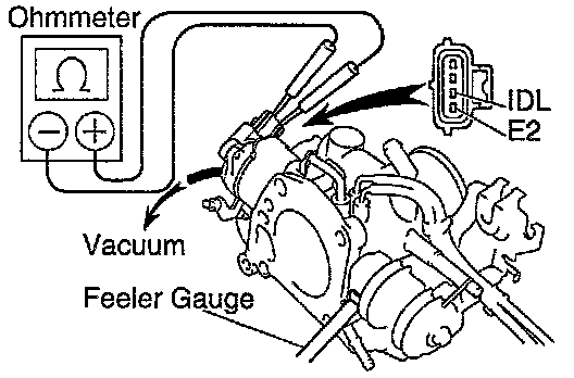 - Connect the test probe of an ohmmeter to the terminals IDL and E2 of the sensor.