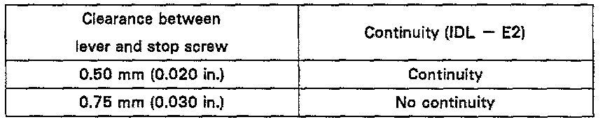 - Insert a 0.62 mm (0.024 in.) feeler gauge between the throttle stop screw and stop lever.