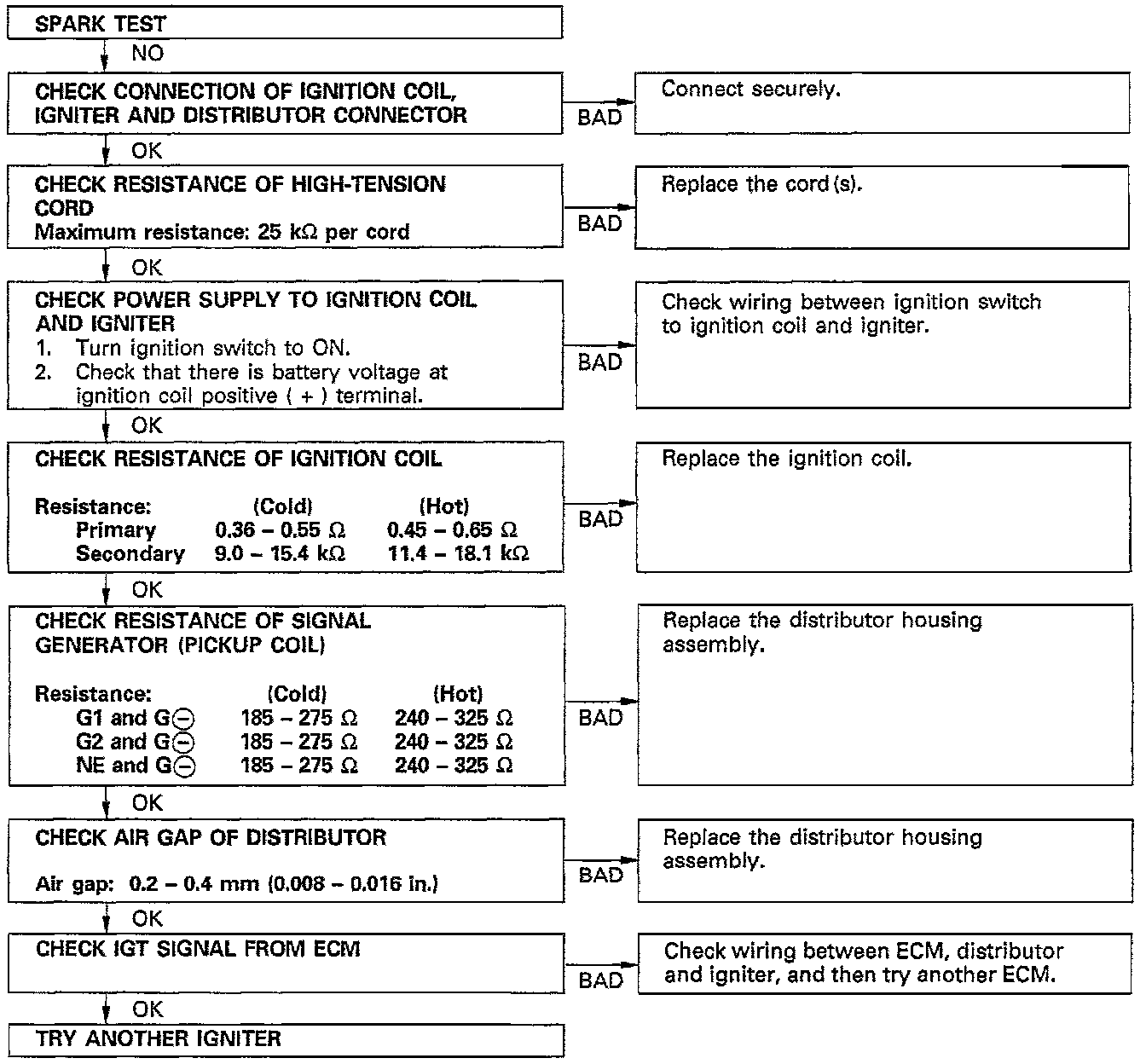 - Disconnect the high-tension cords (from the ignition coil) from the distributor cap.