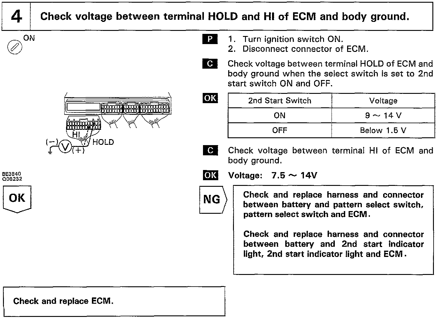 When 2nd start mode is selected with the pattern select switch, the ECM controls the solenoid valves and the transmission starts from 2nd gear.