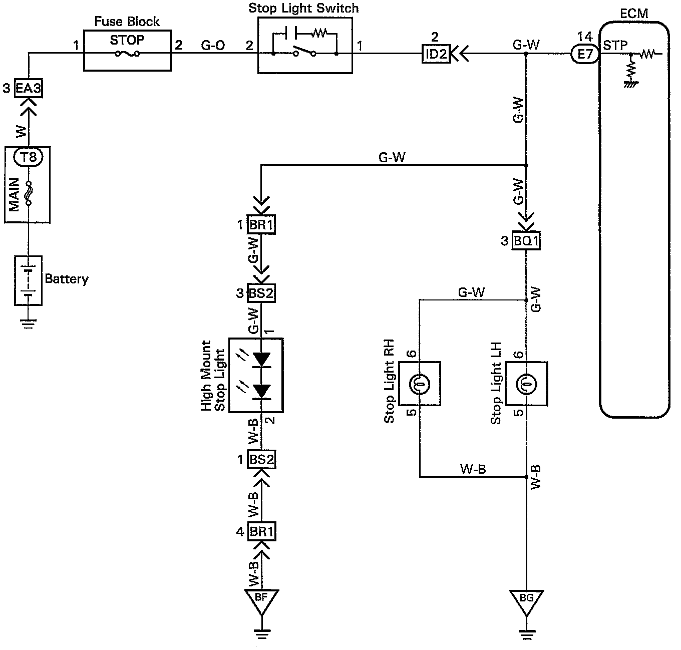 Stop Light Switch Circuit CIRCUIT DESCRIPTION The purpose of this circuit is to prevent the engine from stalling, while driving in lock-up condition, when brakes are suddenly applied.