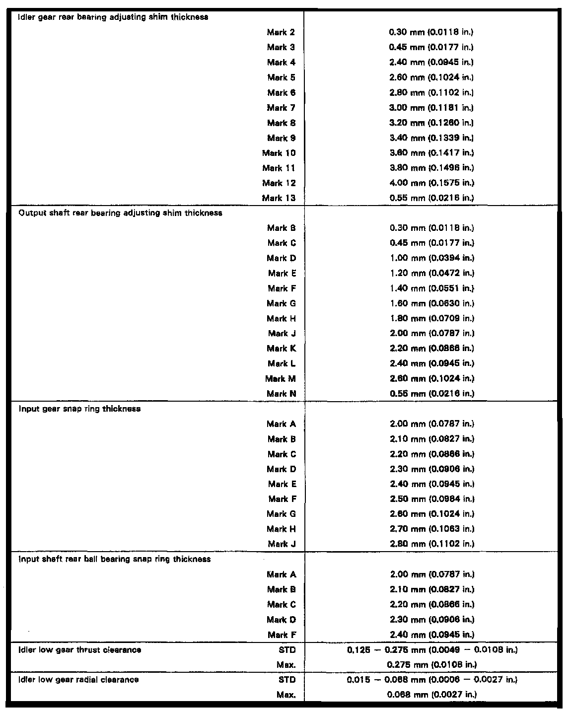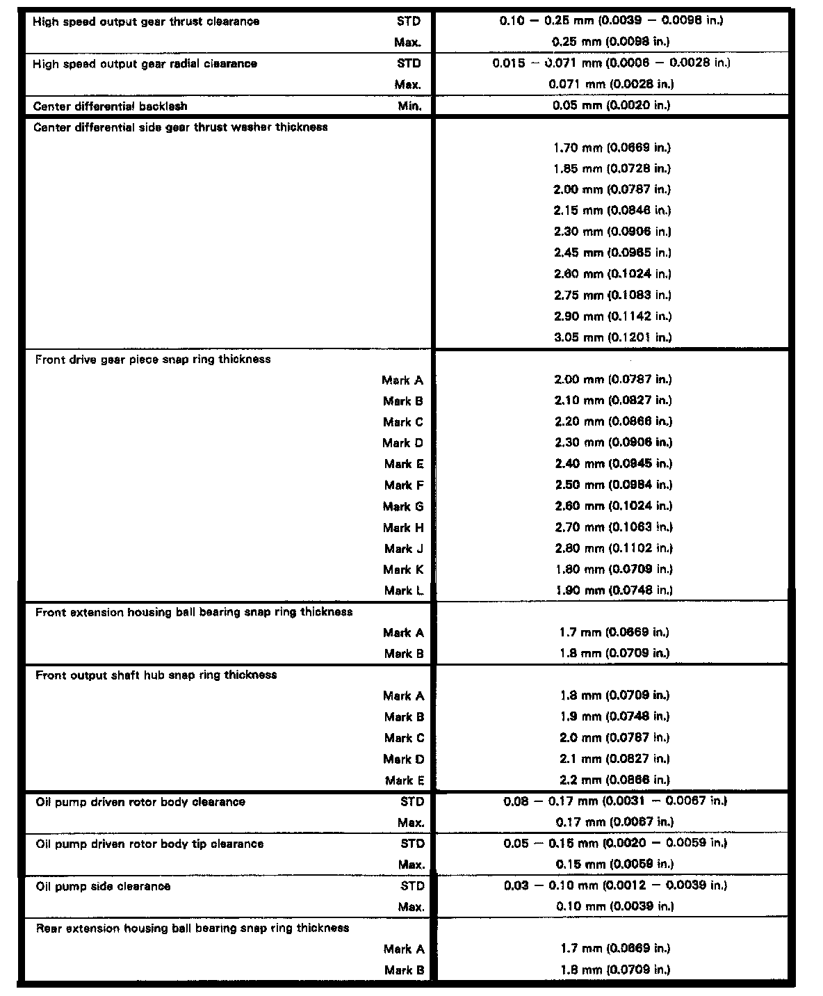 Transfer Case, Clearances/Thickness: