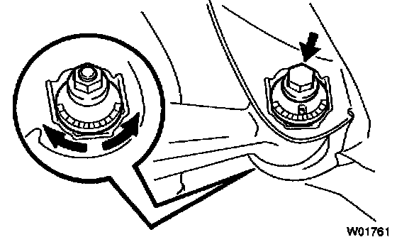 If the toe-in is not within the specification, adjust it by the toe-adjust cam.