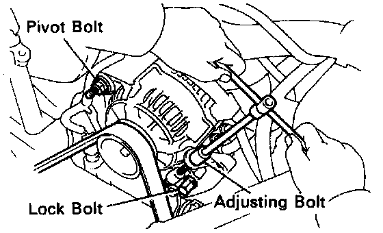 Loosen the adjusting bolt and remove the drive belt.