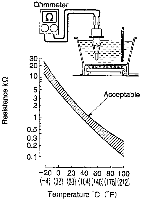 - If the resistance is not as specified, replace the sensor.
